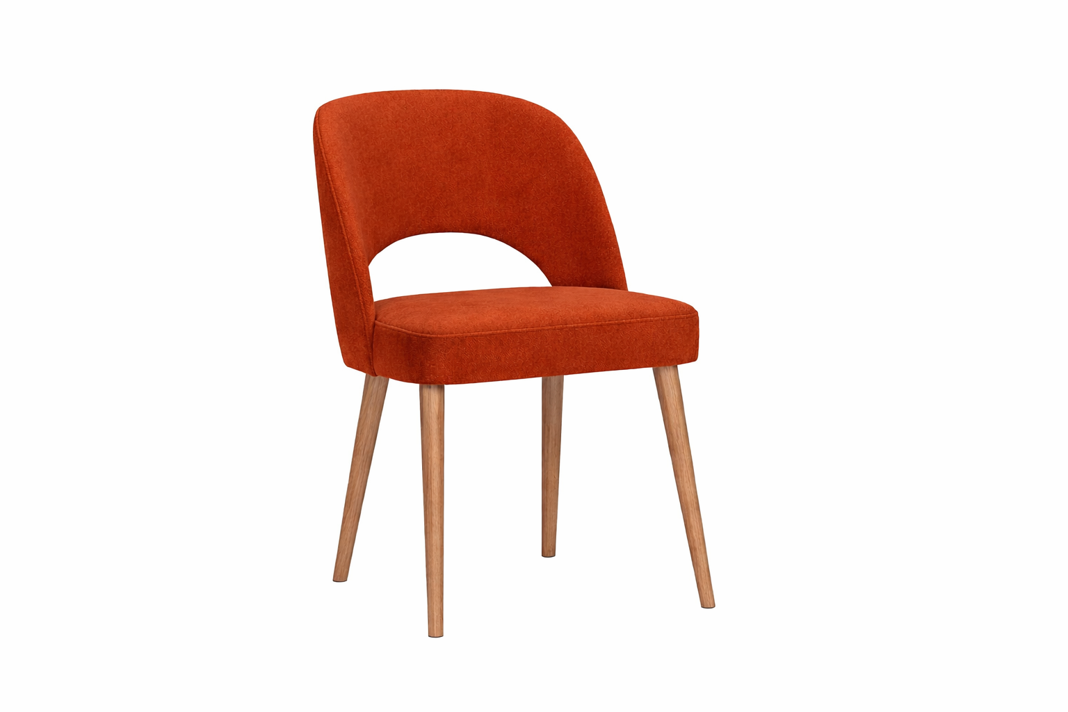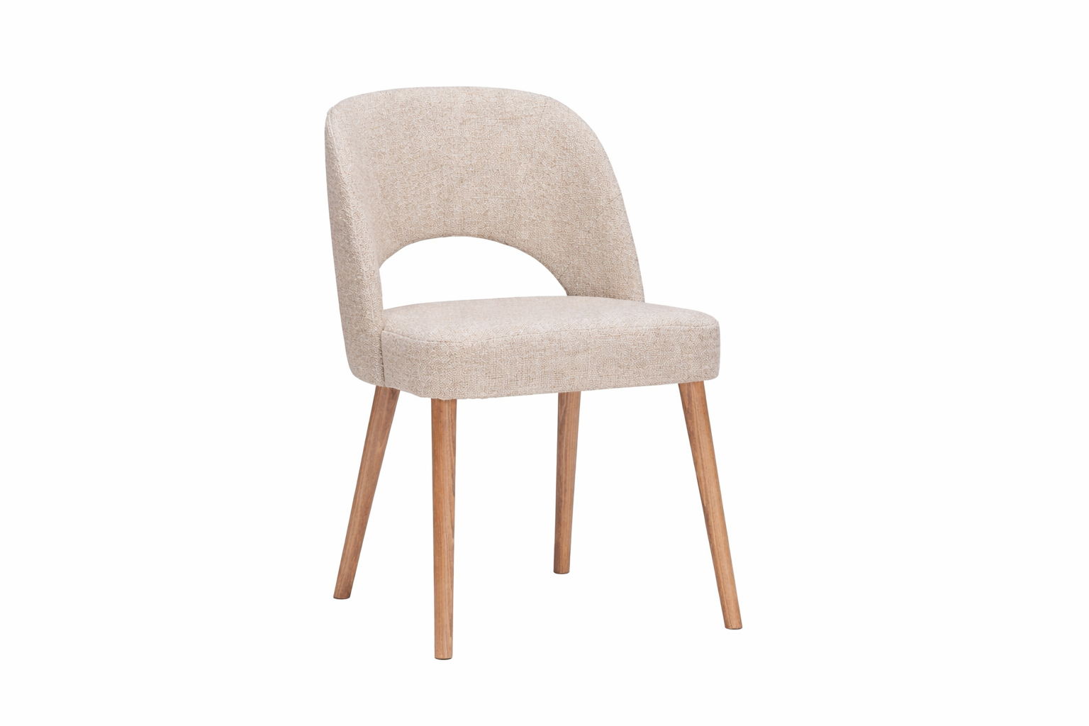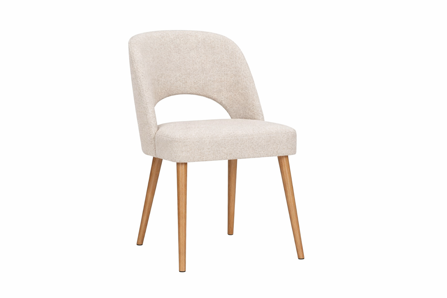 Jego ergonomiczna forma i głębokie siedzisko zapewniają wysoki komfort nawet podczas dłuższego siedzenia, a miękka tapicerka dodaje elegancji i przytulności. Zabudowane oparcie o płynnej, lekko zaokrąglonej linii zapewnia stabilne podparcie, a delikatny łuk wychodzący od siedziska dodaje całości lekkości i nowoczesnego charakteru. Stelaż wykonany z litego drewna gwarantuje stabilność oraz trwałość na lata. Brak podłokietników sprawia, że krzesło prezentuje się lekko i nowocześnie, a przy tym z łatwością wsunie się pod blat stołu – co docenią osoby ceniące oszczędność miejsca i funkcjonalność. Tapicerowane oparcie i siedzisko zapewniają pełne wsparcie plecom i komfort użytkowania, co czyni ten model idealnym zarówno do codziennego użytku, jak i przyjęć czy spotkań rodzinnych. Postaw na komfort i ponadczasowy styl z naszym krzesłem drewnianym, które łączy funkcjonalność z eleganckim wyglądem.