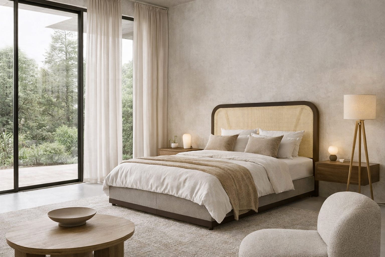 Łóżko z kolekcji Japandi zostało zaprojektowane przez architektów Five Cell.