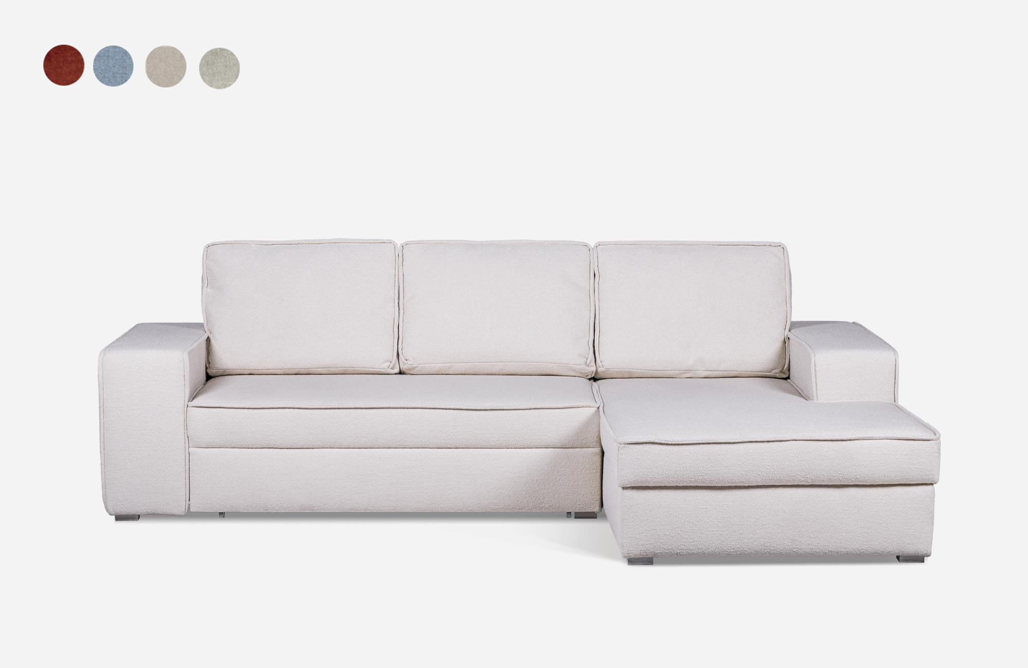 Praktyczny narożnik z funkcją spania i pojemnikiem na pościel, który nada wnętrzom przytulności i ciepła