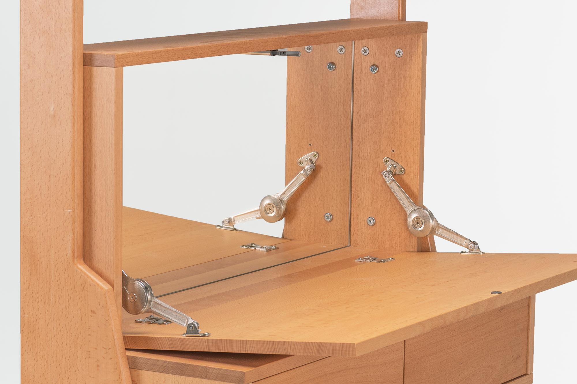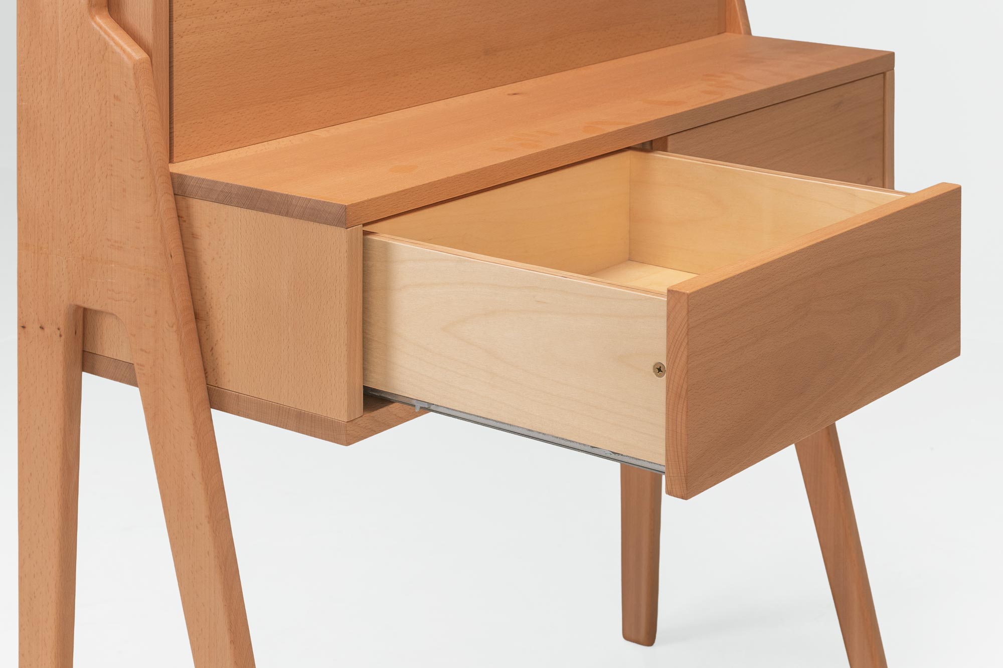 Kolekcja mebli PRL projektu ikony polskiego designu. Regał może służyć jako toaletka, barek lub biurko.